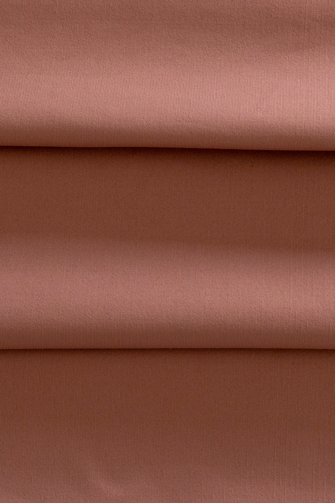 Core is a polyamide and elastane fabric that offers a soft, velvety touch, along with elasticity and high coverage thanks to its weight, making it ideal for bottoms that require comfort, durability, and a flawless drape. Recommended for Sportwear and Activewear pieces such as dresses, leggings, shorts, tops, rompers, jumpsuits, and sports jackets.