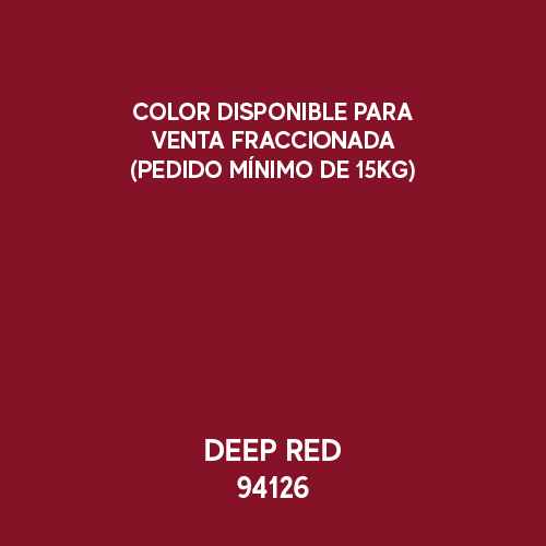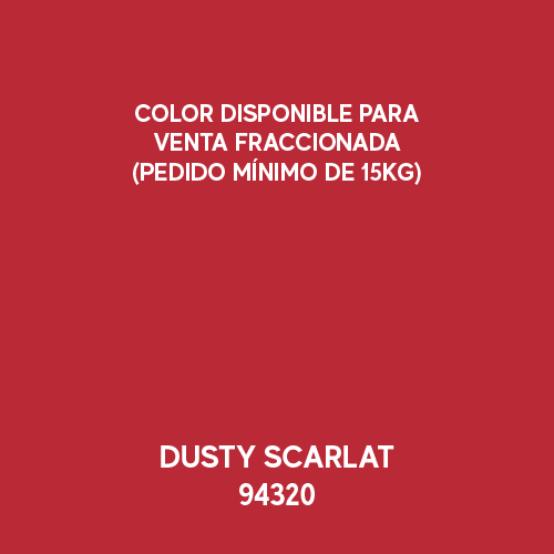 Los colores anteriores están disponibles para venta fraccionada (pedido mínimo de 15 kg). Para más colores, consulte nuestra carta completa y verifique con su representante la disponibilidad.